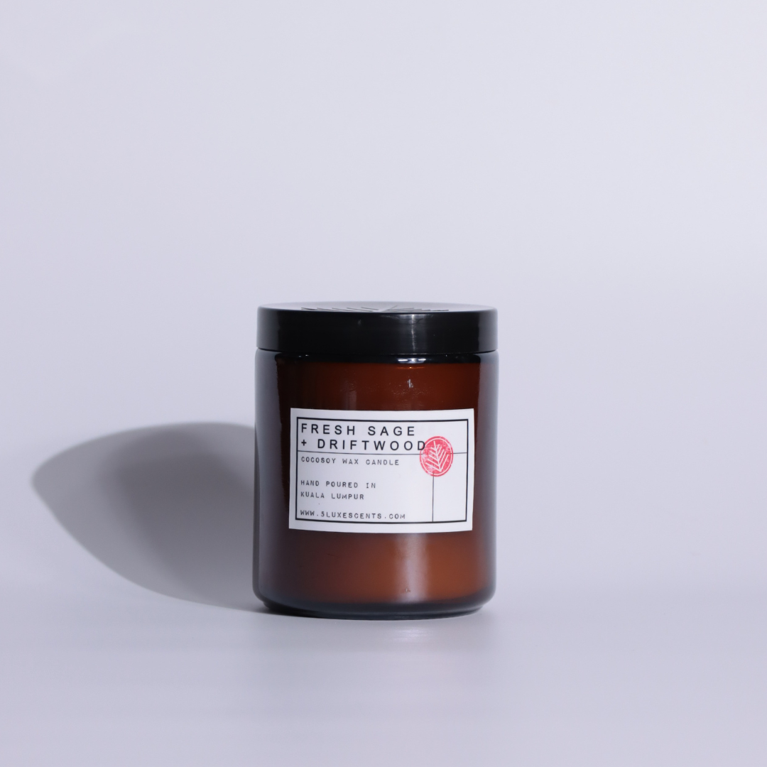 Fresh Sage _ Driftwood evokes the feeling of a refined space filled with quiet conversations, soft light, and the scent of aged wood and amber in the air. A blend of crisp bergamot and lemon opens the fragrance, followed by earthy sage and subtle spice, grounded by amber and cedarwood.
